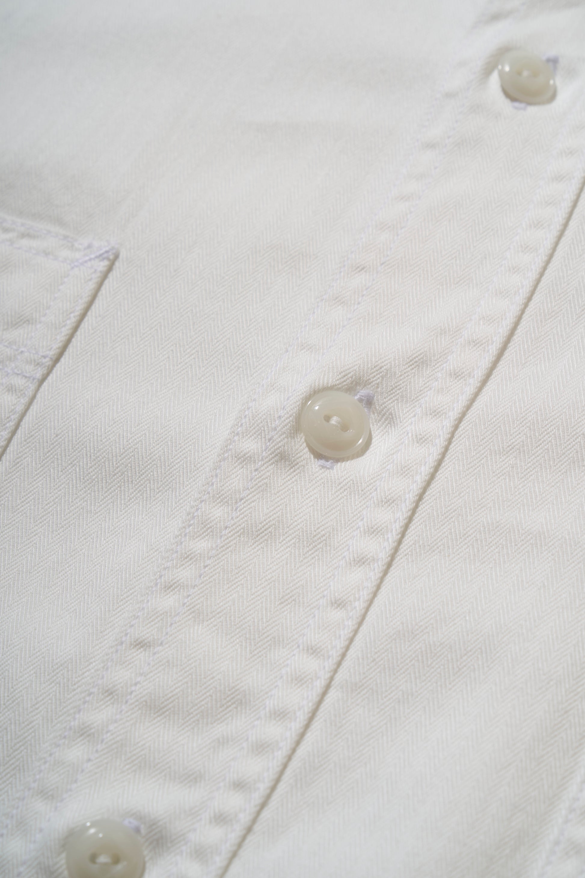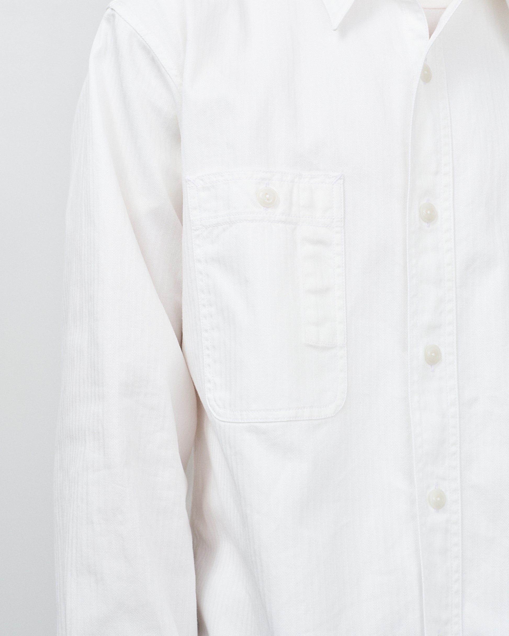 40年代のヴィンテージワークシャツに使われていたミニヘリンボーン生地をオマージュし、オリジナルよりもやや薄く仕上げることで、季節の変わり目にも快適に着用できる生地を制作。