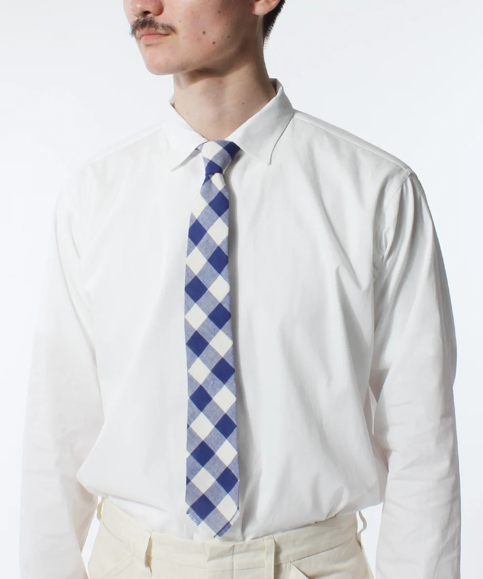 【 HAND FRINGE TIE HL MADRAS / BLUE 】
