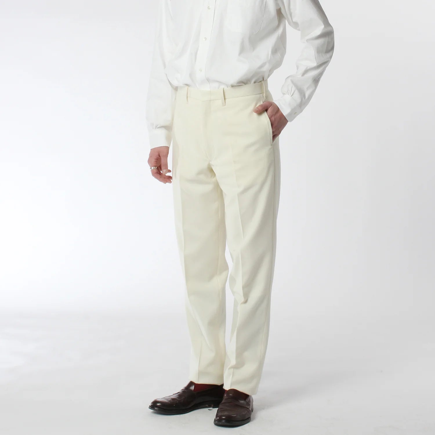 ANATOMICA TRIM STEM PANTS WOOL FLANNEL / IVORY
