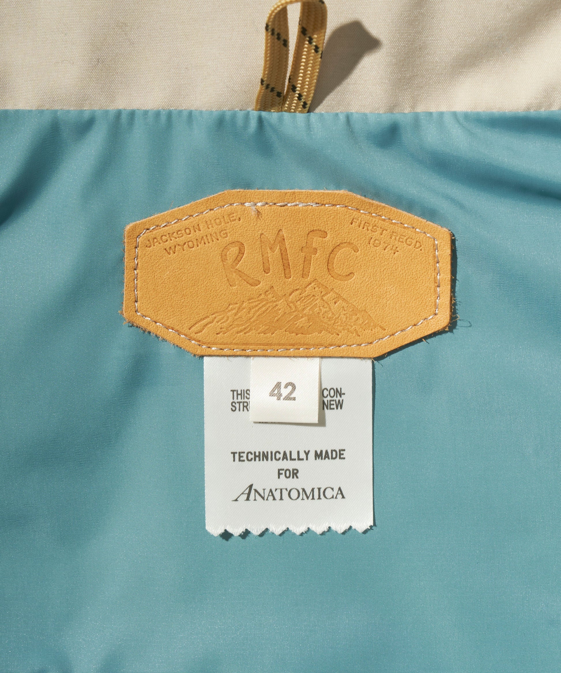 1974年当時最高のハイテク素材であった防水素材をいち早く採用、一枚革ヨーク仕様のマウンテンパーカを完成させた” Rocky Mountain Fetherbed “よりANATOMICA別注モデルが登場。