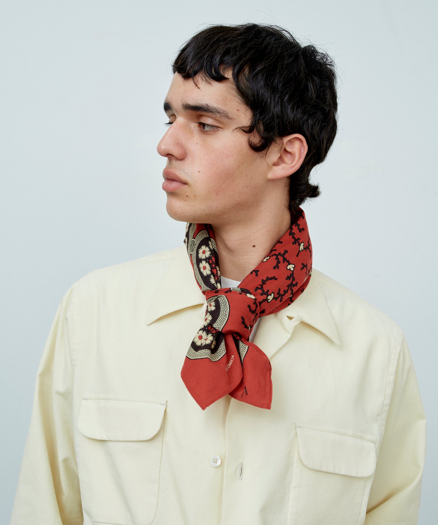 ヴィンテージのバンダナがデザインソースとなっており、生地に極力負担をかけない仕上げ方法を行うことにより唯一無二の柔らかく膨らみのある質感を実現。