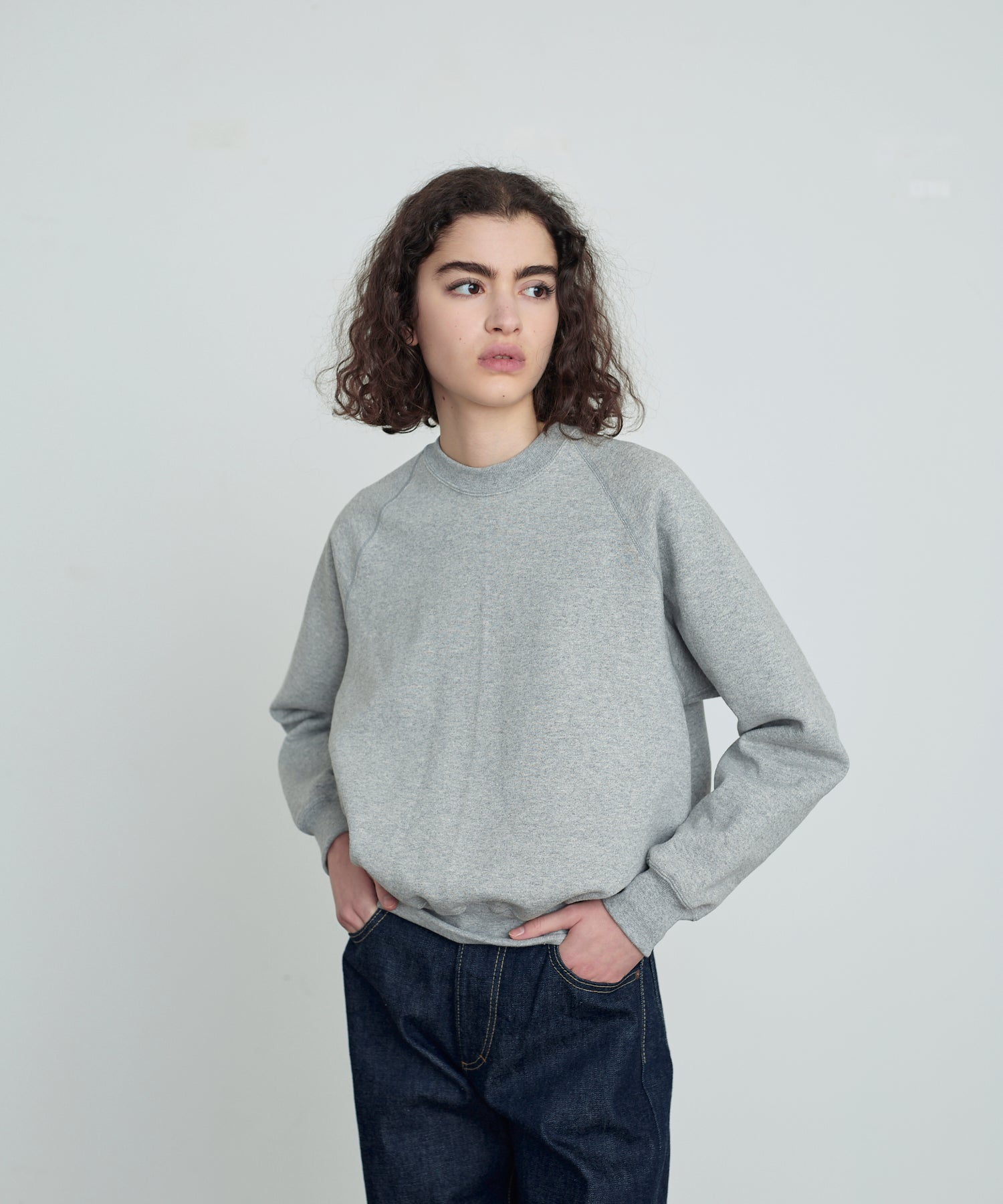 【 SWEAT RAGLAN CREW NECK / GREY 】