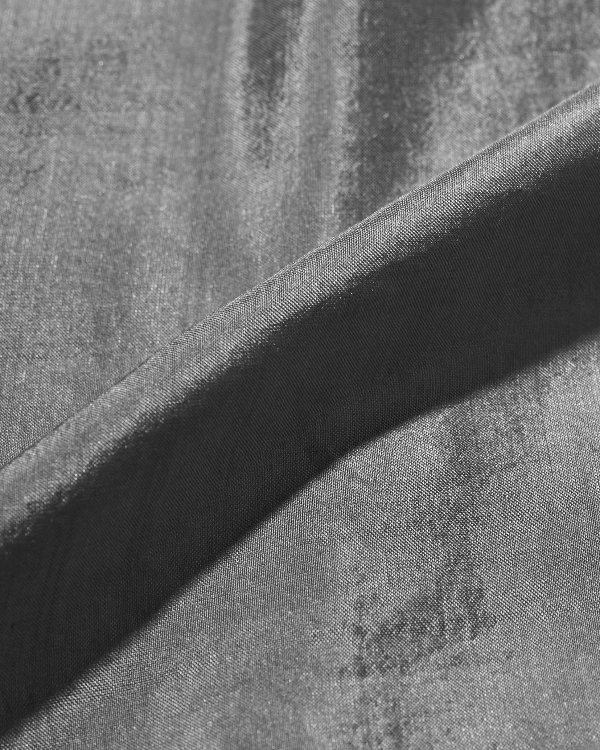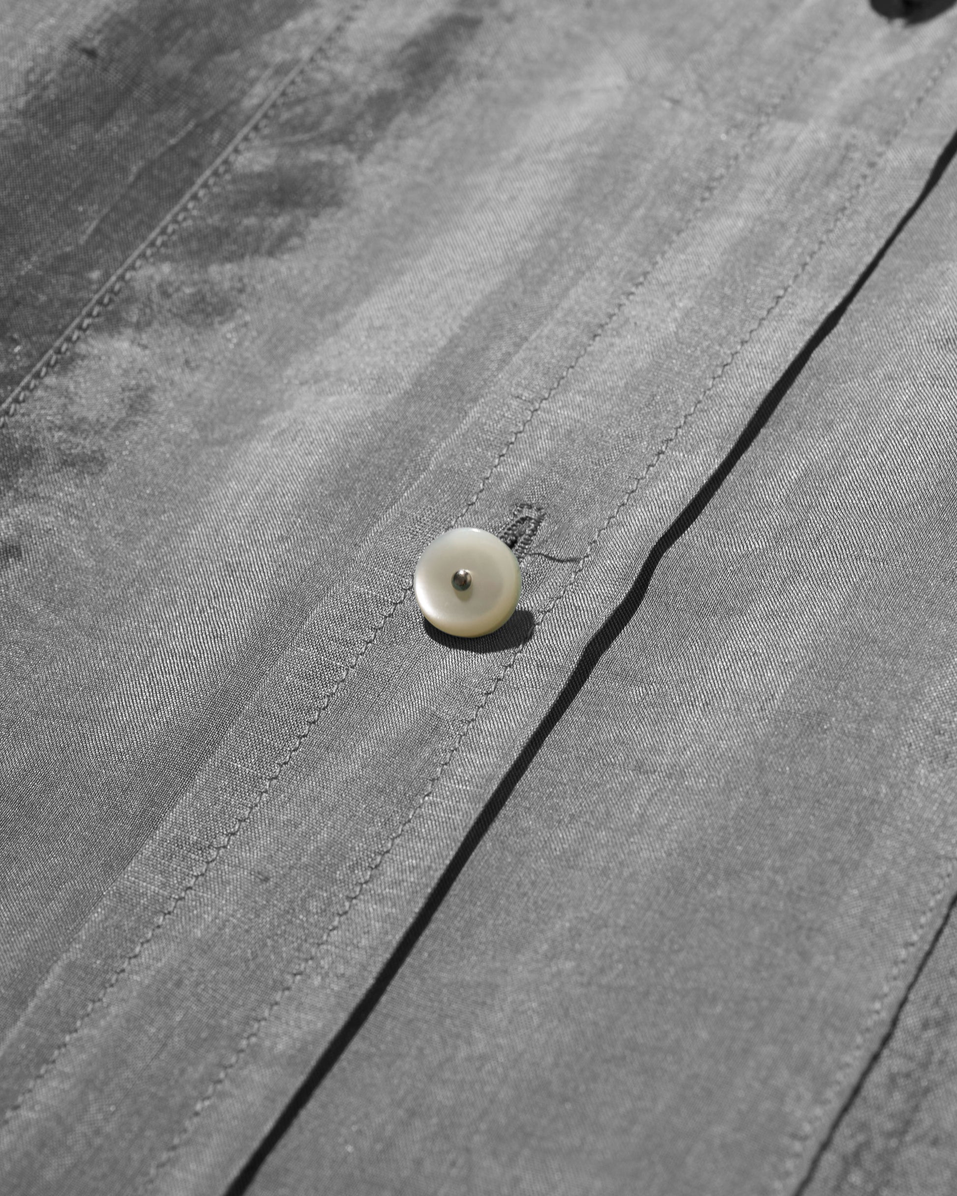 今回は、“ KHADI SILK ”を採用した贅沢な仕様。“ KHADI ”とはインドで“ 手仕事 ”を意味します。手紡ぎ手織りにより多くの空気を含み、軽くて速乾性に優れた生地となります。インドで丁寧に織られた生地を日本で染色する、という手の込んだ一着に仕上がりました。