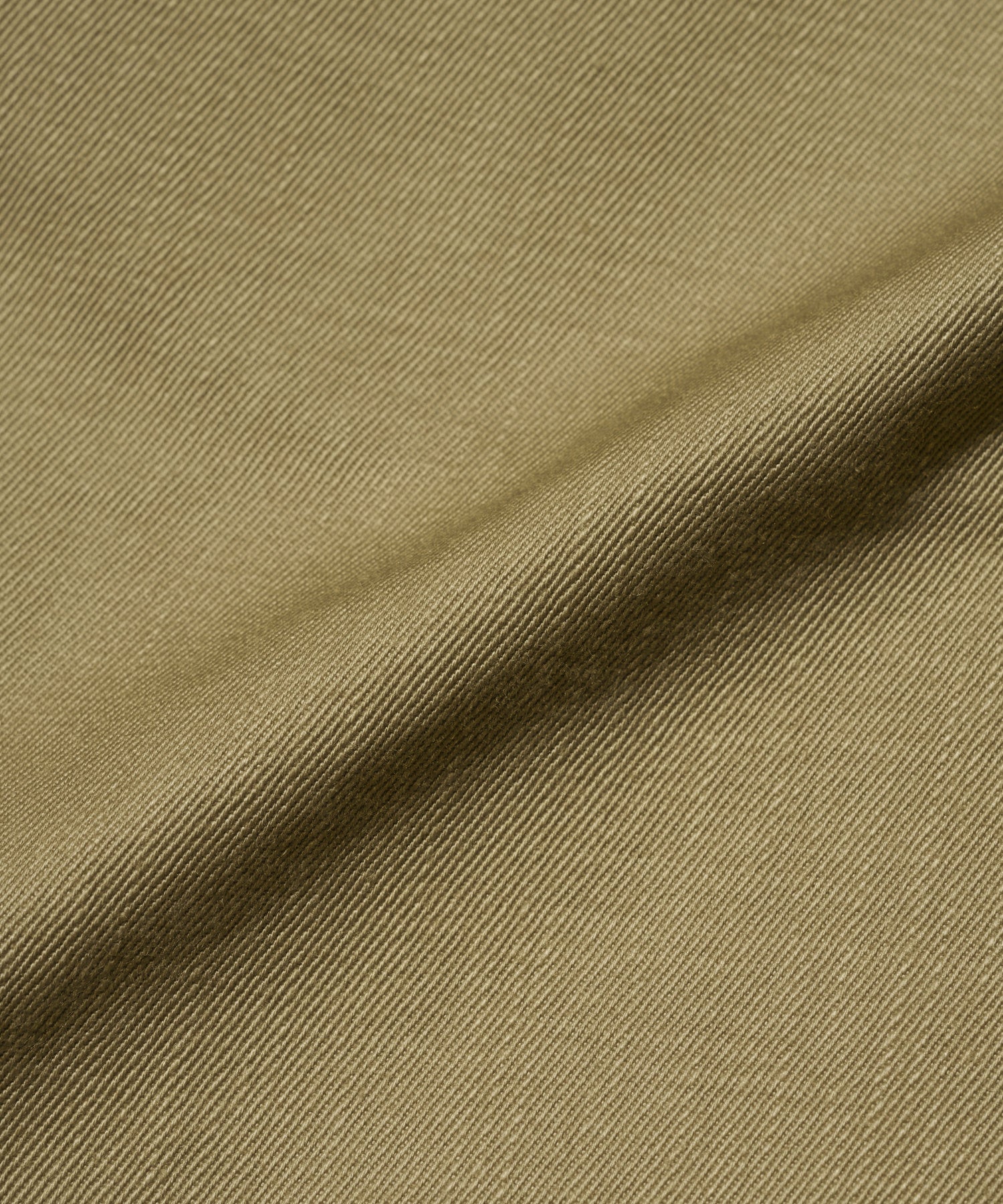 素材にはスレン染料を使用したチノクロスを採用。スラブ糸ならではの立体感ある表情が経年変化で際立ち、育てる楽しみを存分に味わえる一本。